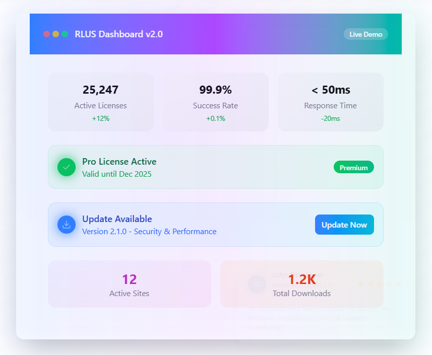 RLUS turns your WooCommerce store into a fully automated WordPress plugin marketplace. From license generation to customer updates, everything runs seamlessly in the background.